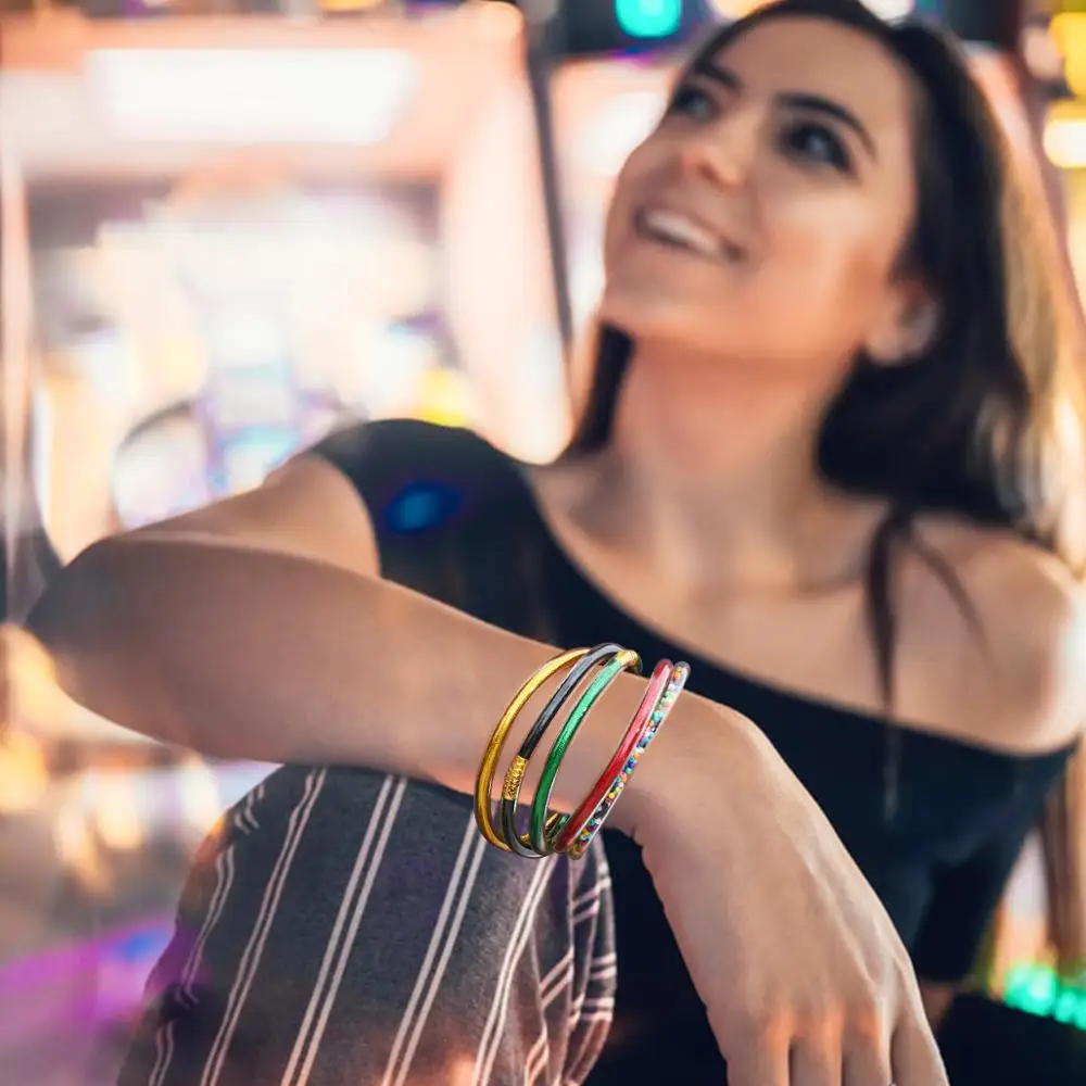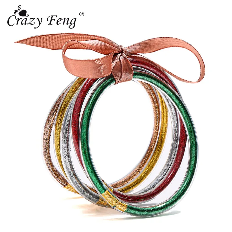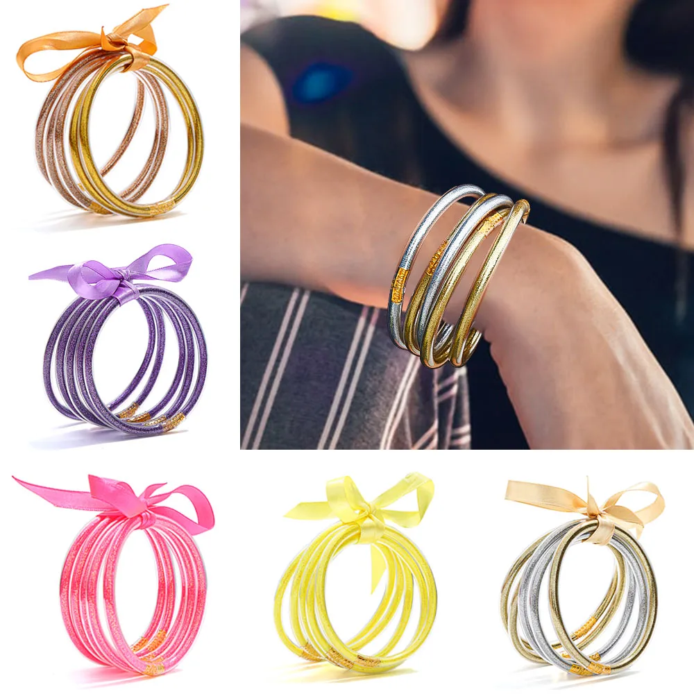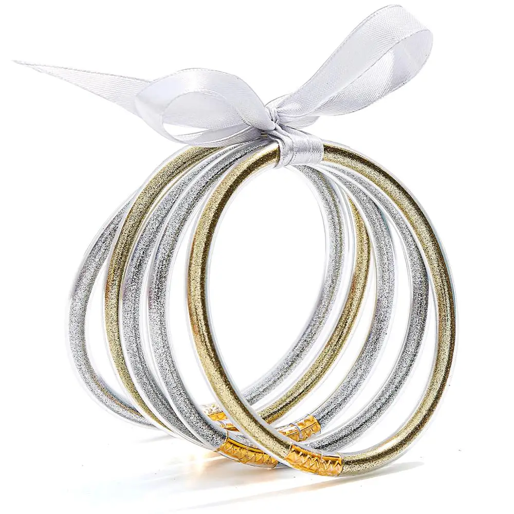 Best All Weather Bangle Glitter Filled Stardust Silicone Circle Women Bowknot Jelly Bangles Bracelet Fem