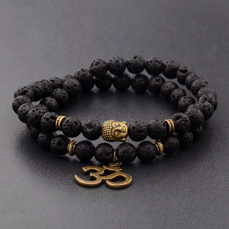 Best Amader Charm Retro Buddha Bead Bracelet Men Black Natural Stone Chakra Bracelets Erkek Bileklik Bra