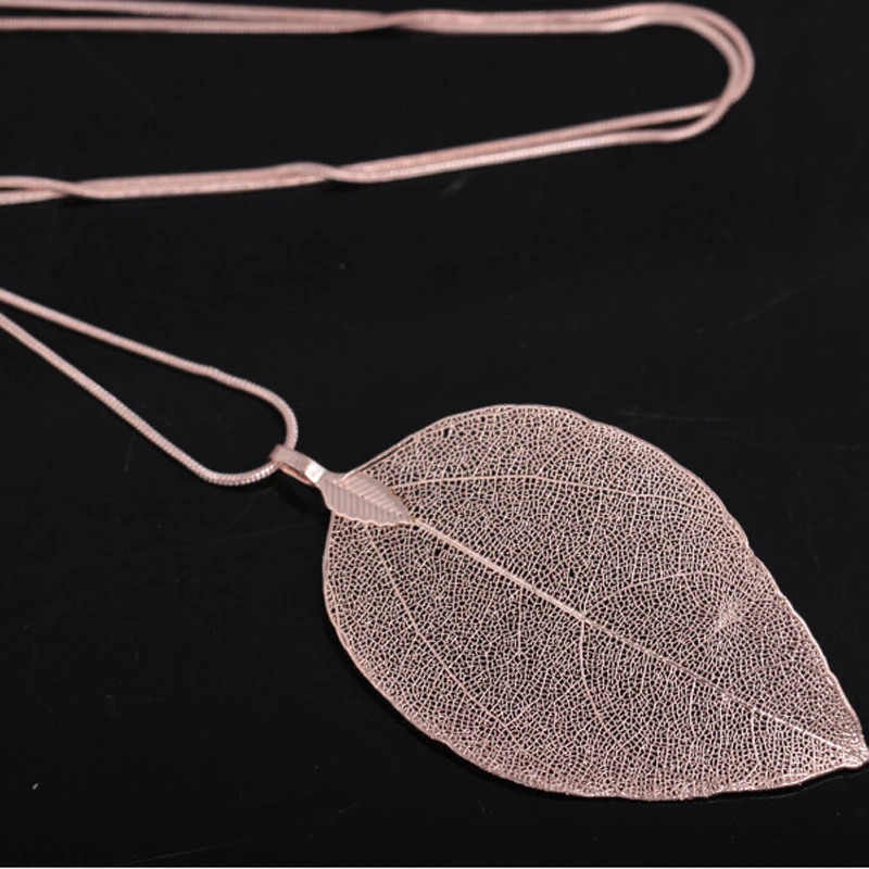 Best Fashion Jewelry Maxi Necklace Rose Gold Color Chain Real Leaf Charm Design Pendant Necklaces & Pend