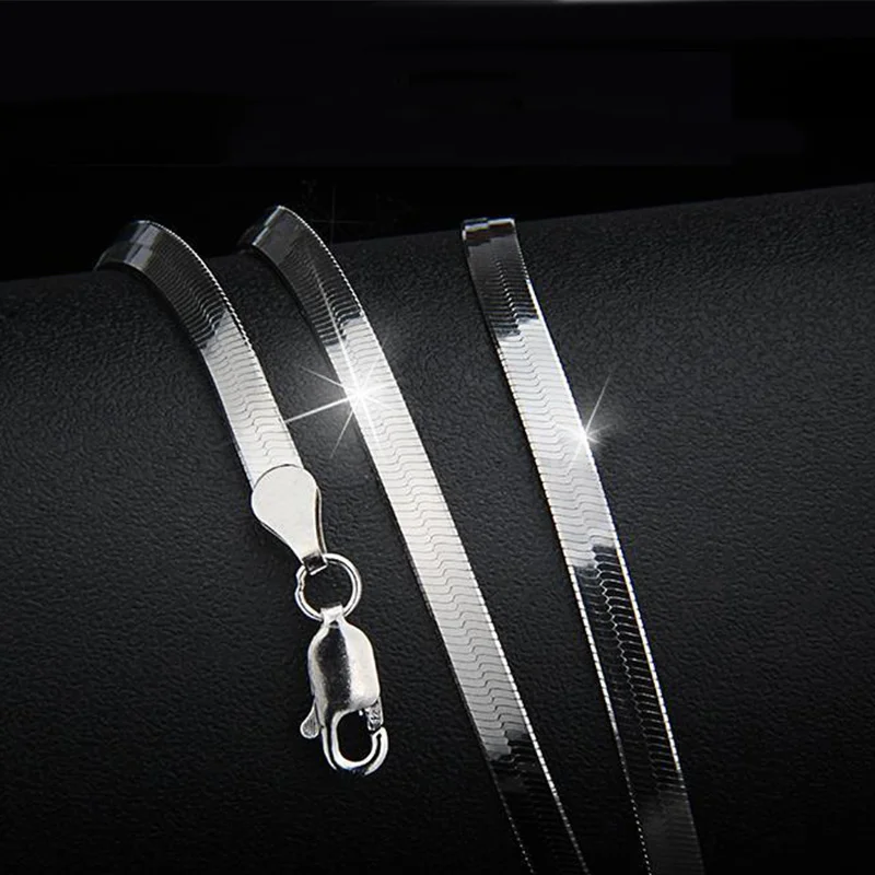 Best Flat Snake Link Lobster Clasp Collares Necklaces Women925 Sterling Silver ChokerUnisex Long Stateme