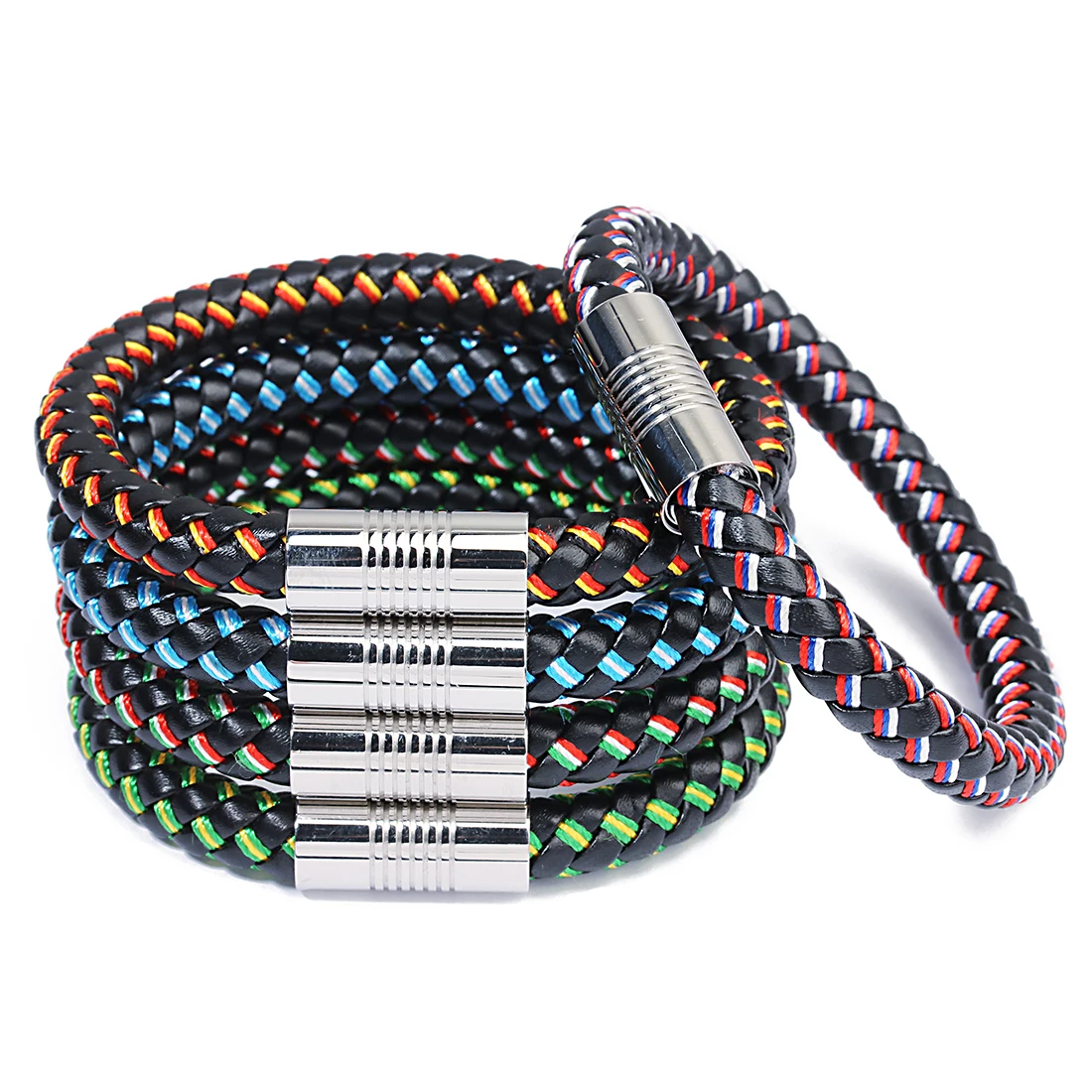Best LOULEUR 21.5 cm Hot Sale Country Spain France Flag Rope Leather Bracelet Colorful Magnet Bracelets&
