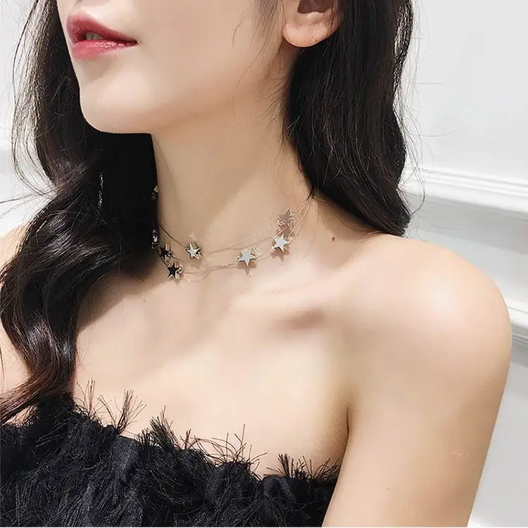 Promo MENGJIQIAO 2018 Korean New Trendy Choker Necklace For Women Cute Star Multi Layer Short Collares Co