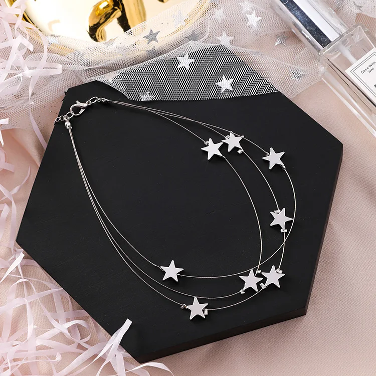 Best MENGJIQIAO 2018 Korean New Trendy Choker Necklace For Women Cute Star Multi Layer Short Collares Co