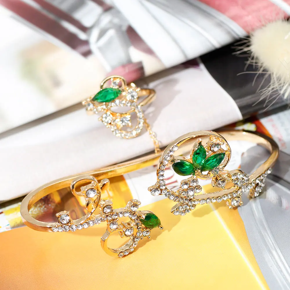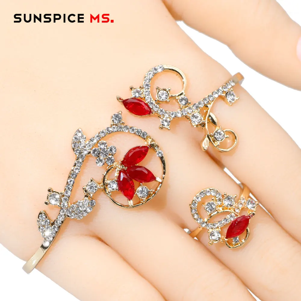 Best SUNSPICEMS gold color palm bangle with ring fashion zircon wedding jewelry for Social gatherings se