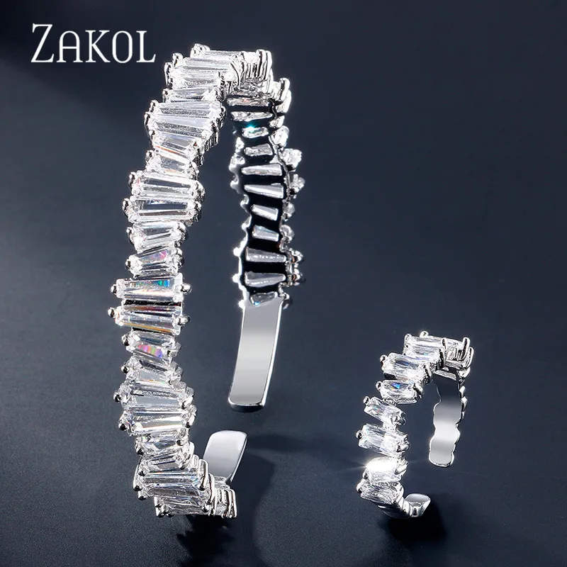 Best ZAKOL Luxury Square Cubic Zirconia Adjustable Bracelet Ring Set Bridal Jewelry for Women Wedding Di