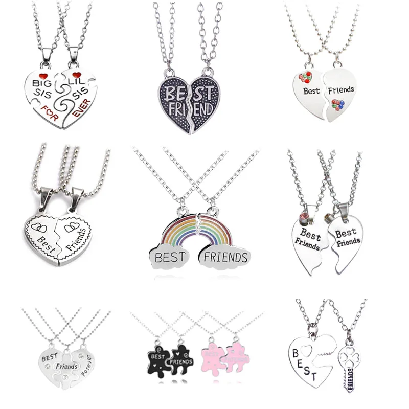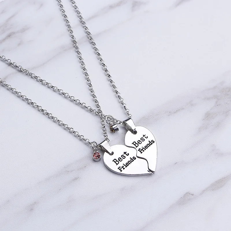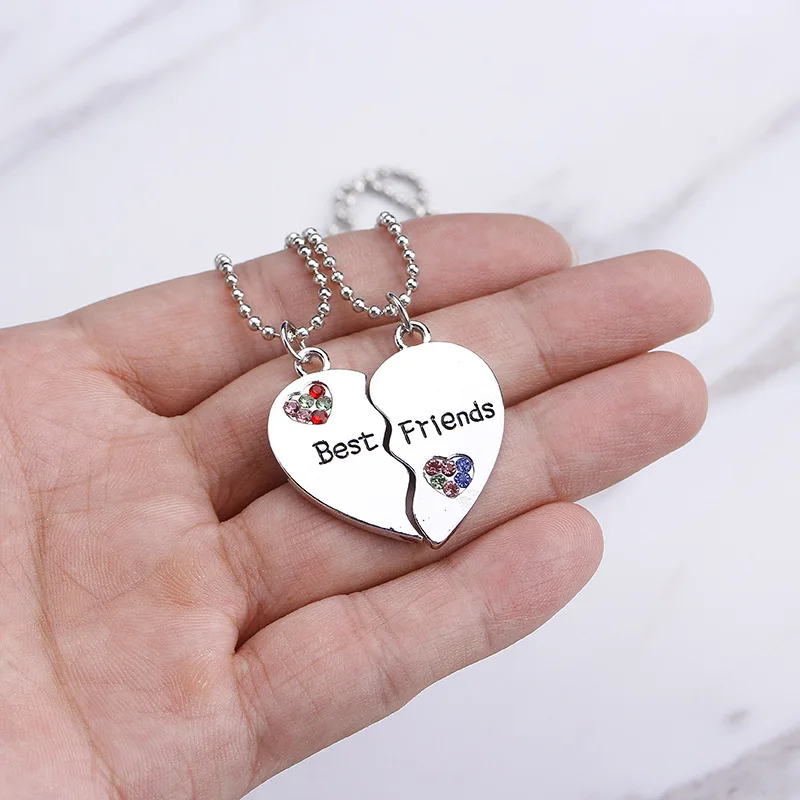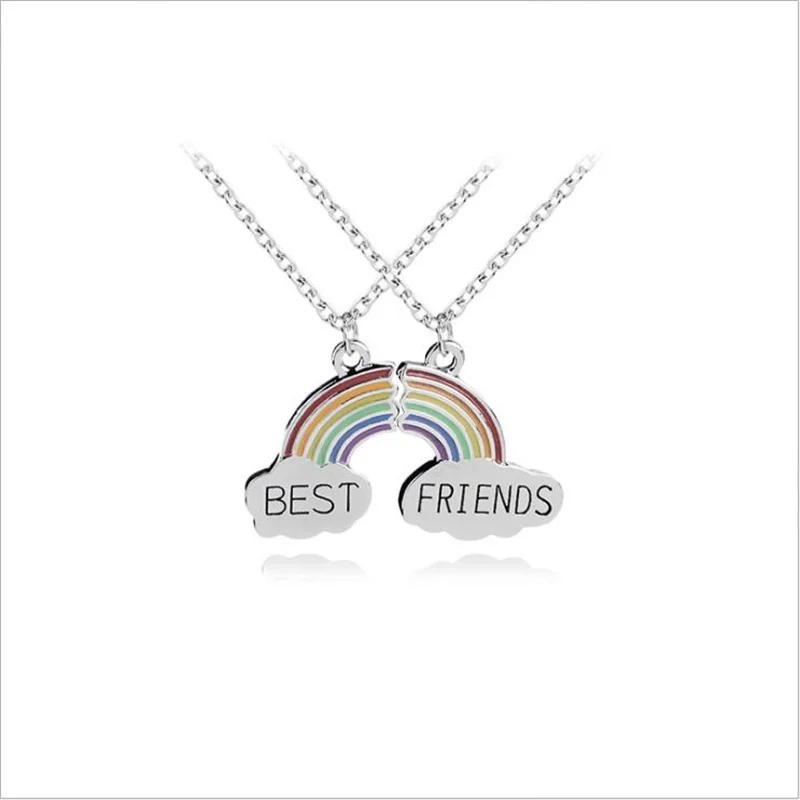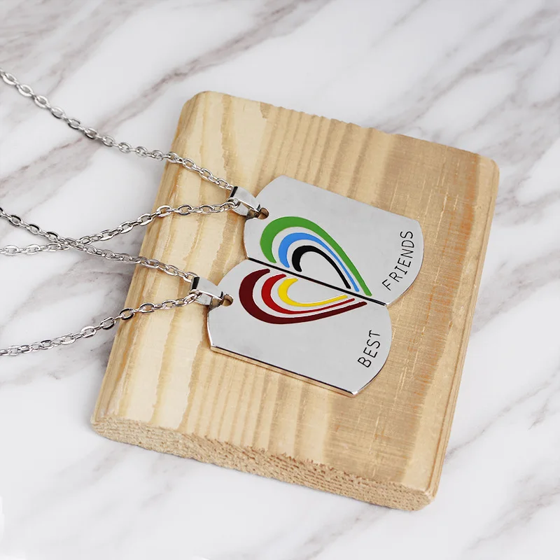 Buy 2 pieces / set Fashion Best Friend Stitching Pendant Necklace Rainbow Broken Heart Necklace Female