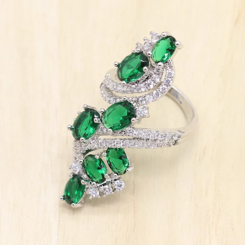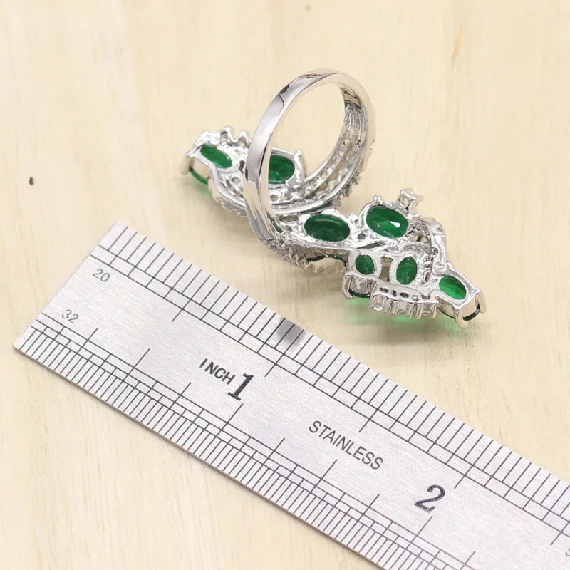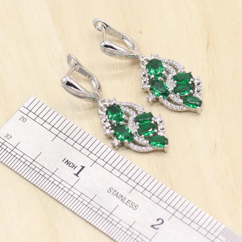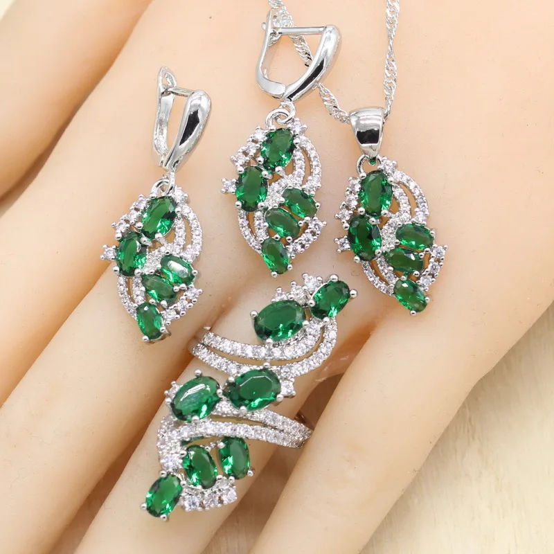 Buy Green Semi-precious Women 925 Stamped Silver Wedding Jewelry Sets with Bracelet Necklace Pendant Ea