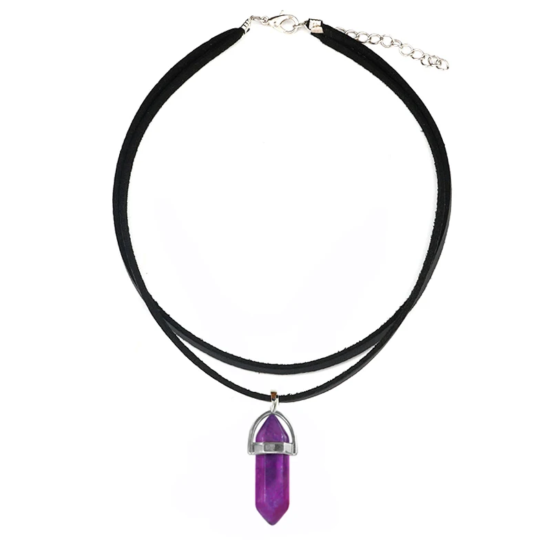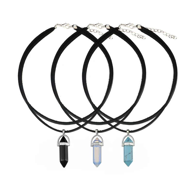 Promo Opal Hexagonal Column Stone Choker Necklace Women New Cute Vintage PU Leather Chocker Necklace with