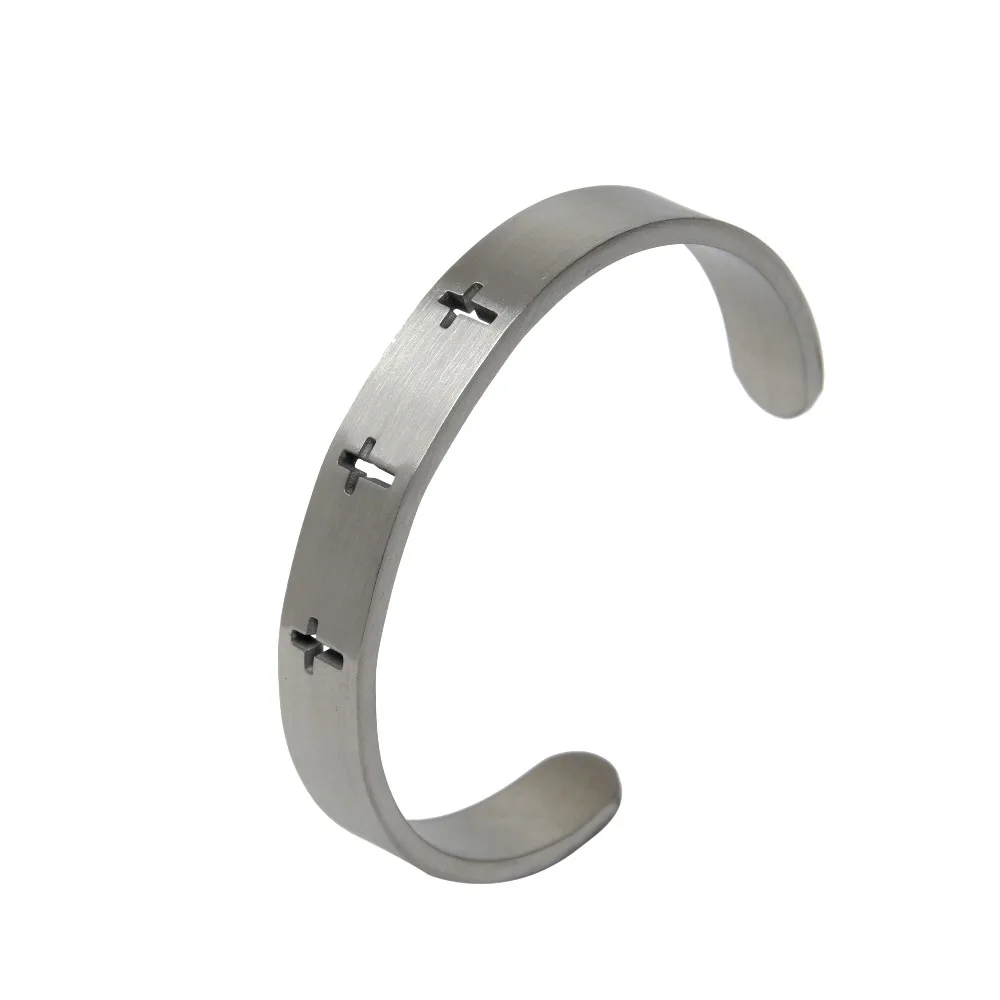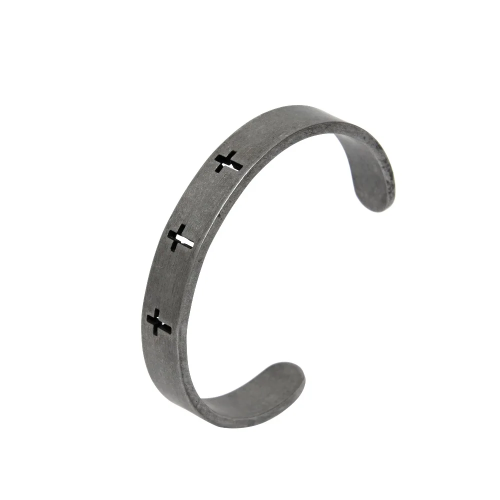 Buy Stylish Stainless Steel Vintage Silver Hollow Out Cross Bracelet for Men Women Width Surface Bracel