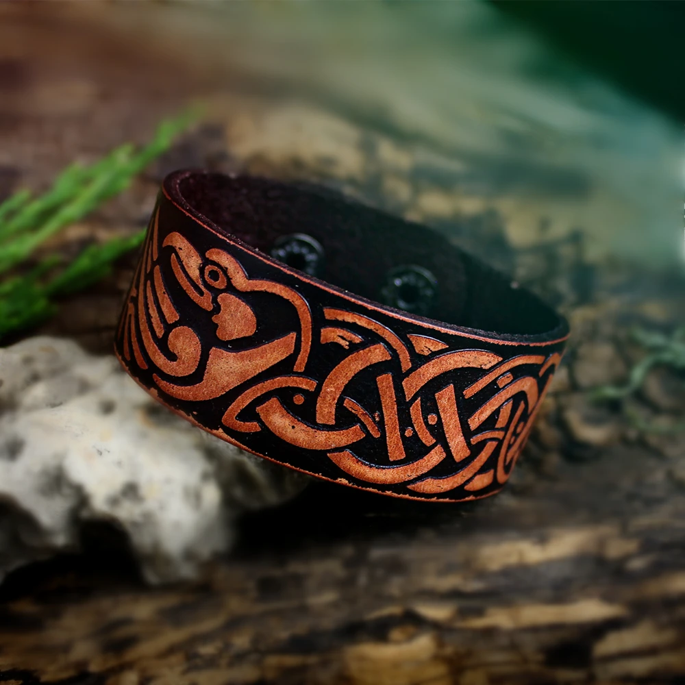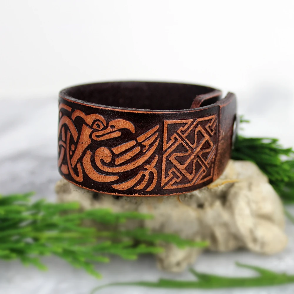 New Brown Viking Ravens of Odin Leather Bracelet Norse Birds Eagle Wrist Cuff Celtics Knot Wristband No