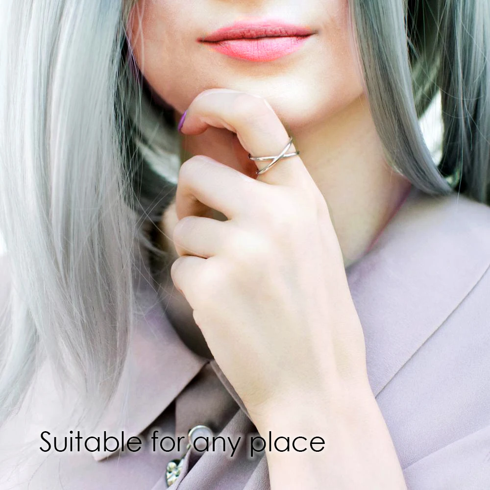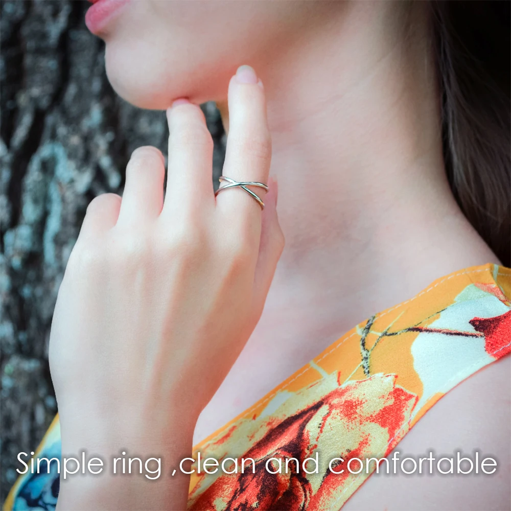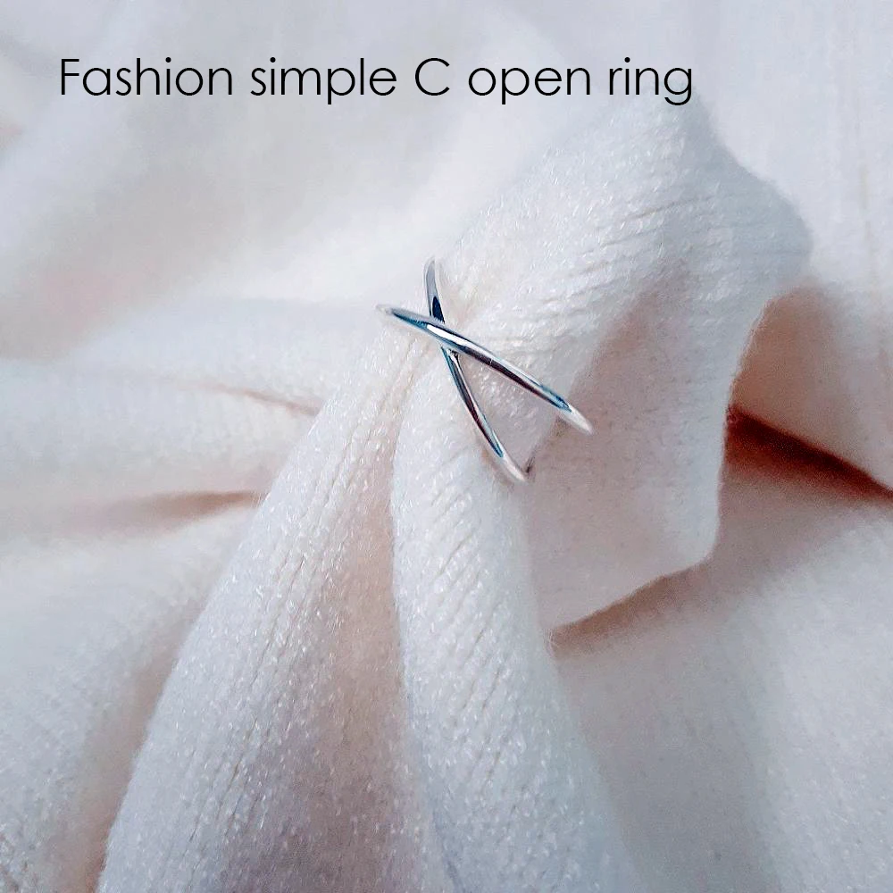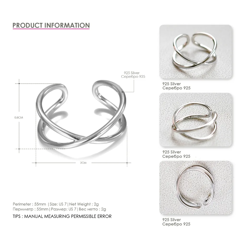 New e-Manco 925 Sterling Silver Women's Rings Trendy Minimalist C Shape Open Cross Cuff Adjustable Ring