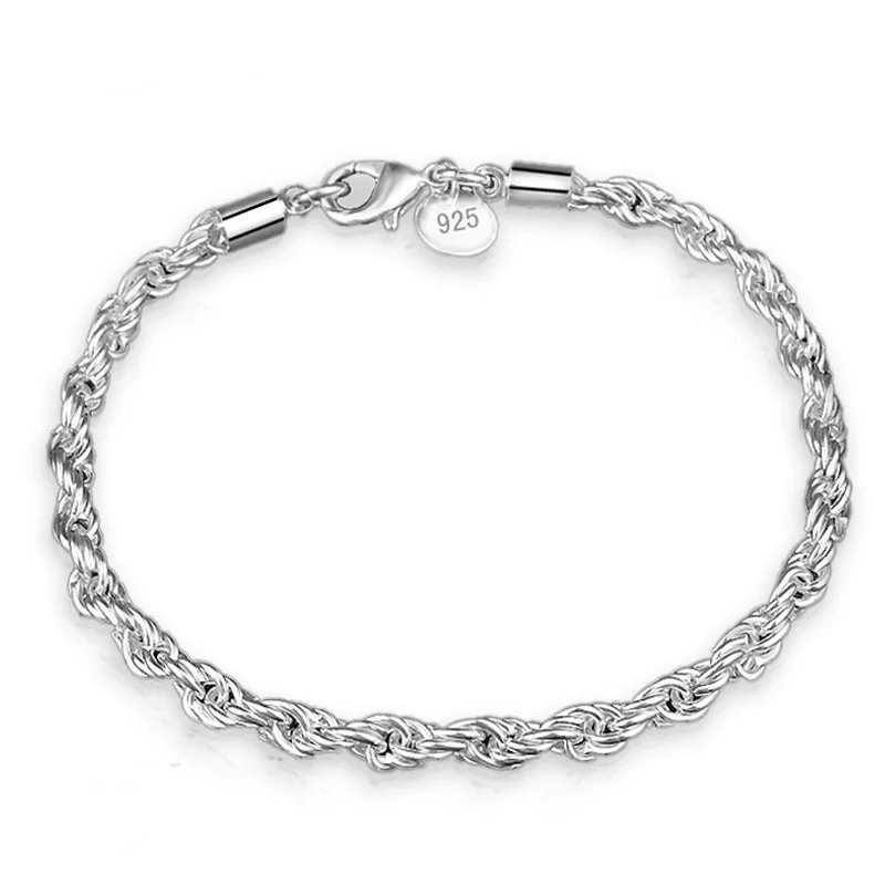 Buy OMHXZJ Wholesale Personality Fashion OL Woman Girl Party Wedding Gift Silver Twisted Chain 925 Ster