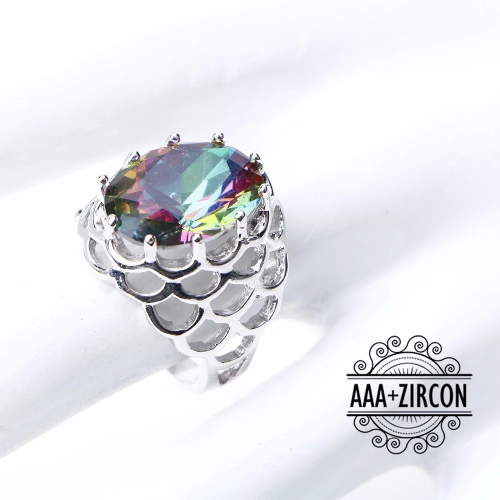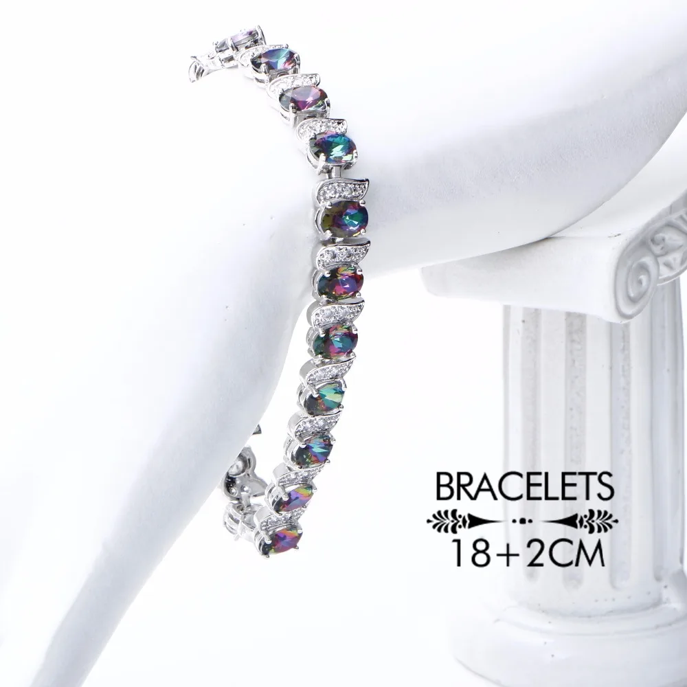 New Rainbow Zirconia 925 Sterling Silver Jewelry Sets For Women Stones Jewelry Bracelet Necklace Earrin