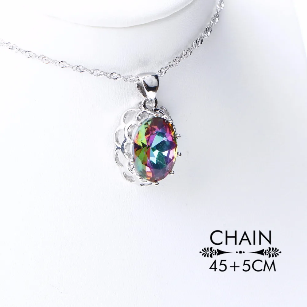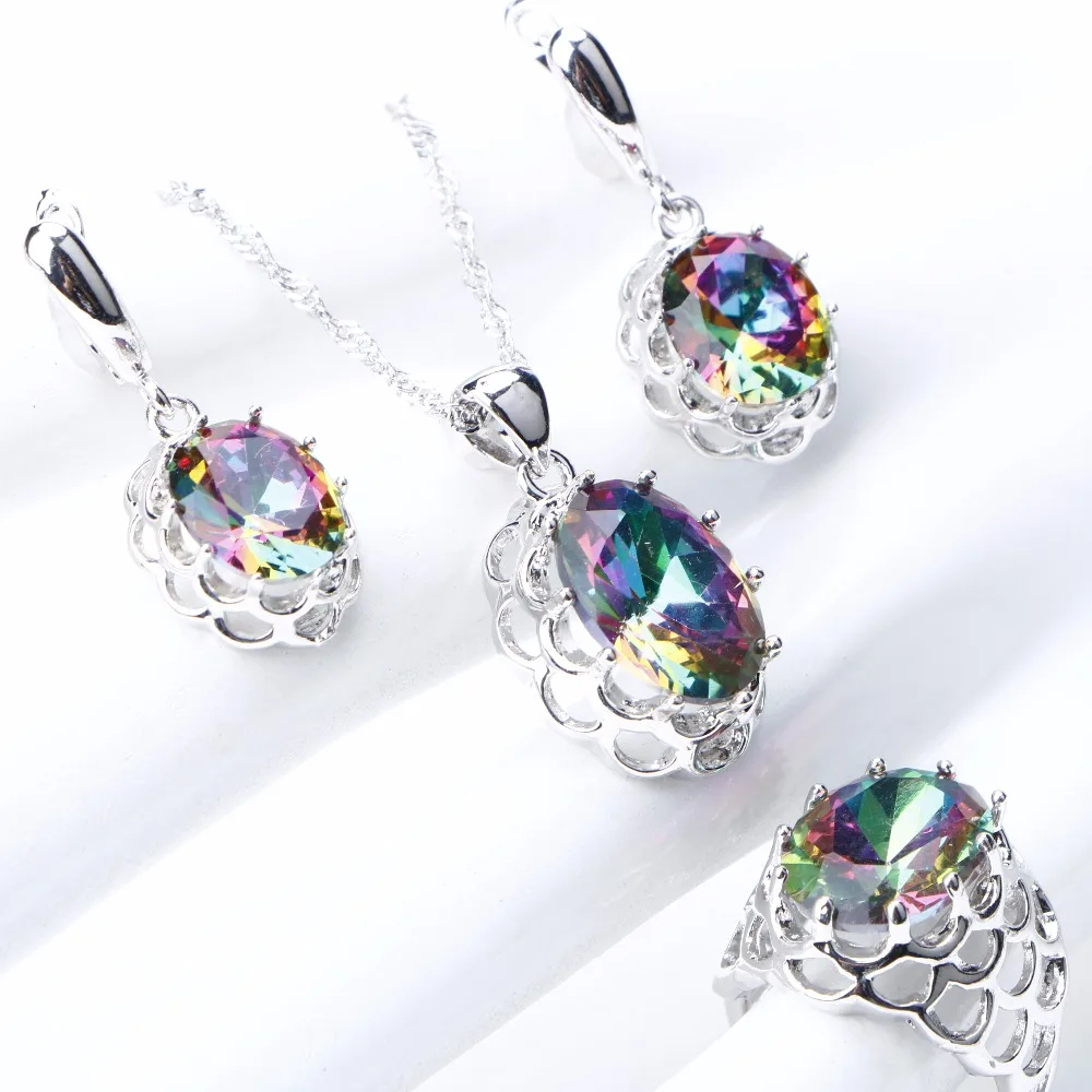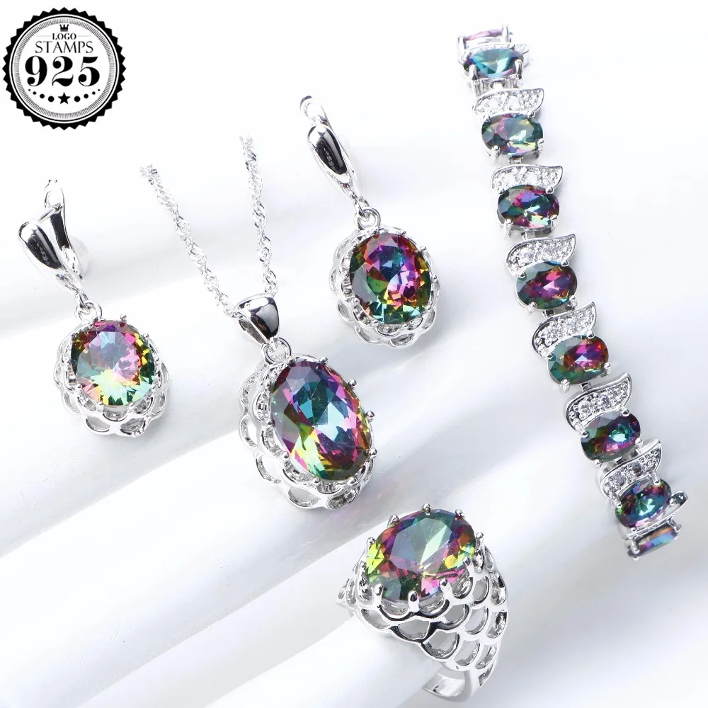 Promo Rainbow Zirconia 925 Sterling Silver Jewelry Sets For Women Stones Jewelry Bracelet Necklace Earrin