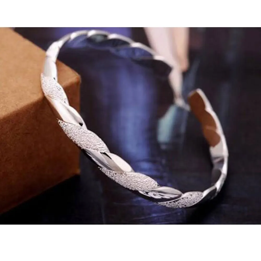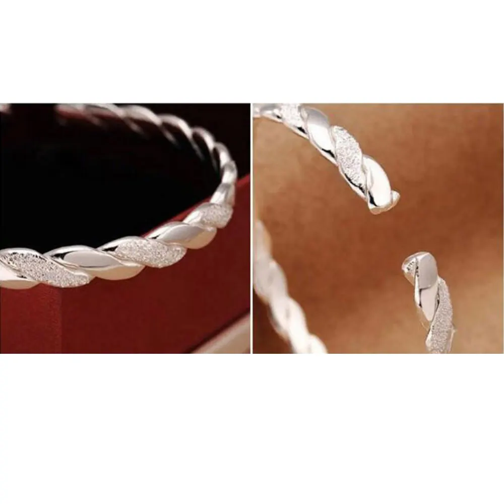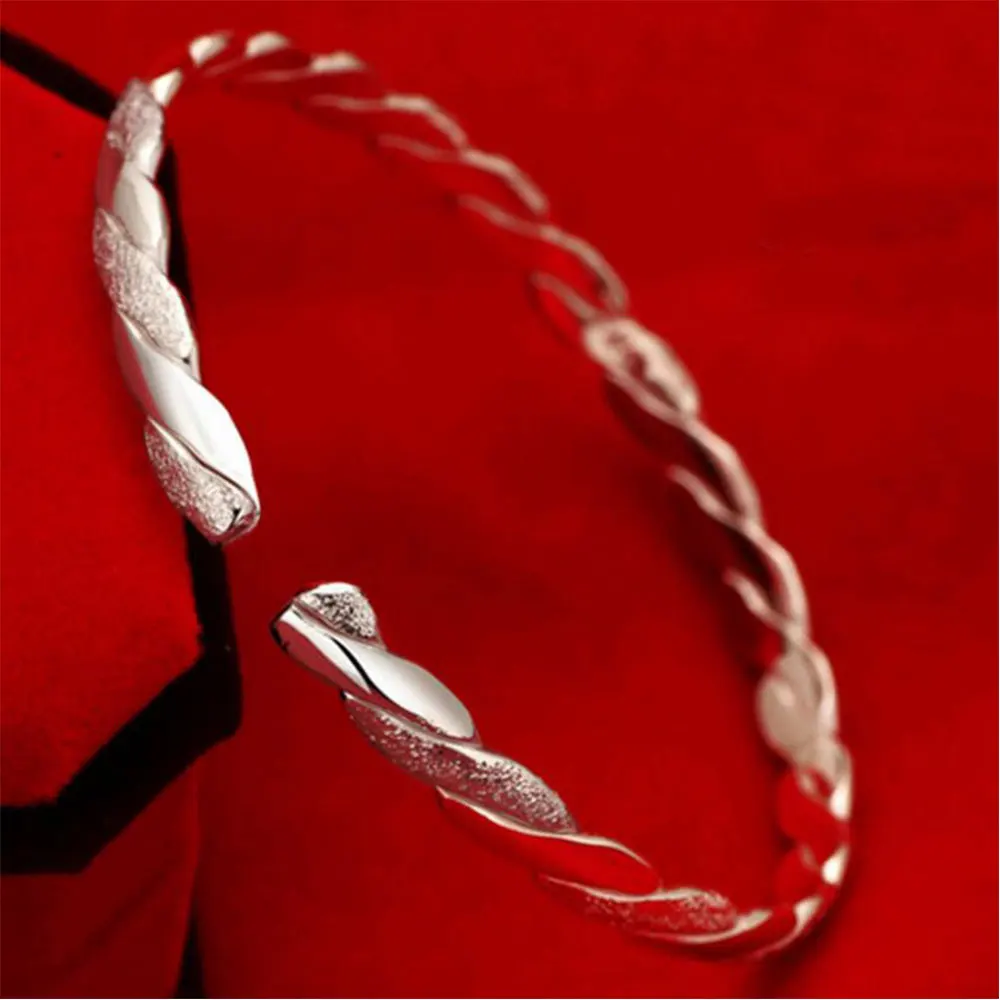 New Anenjery 925 Sterling Silver Love Twist Scrub Cuff Bracelets & Bangles For Women pulseras Valentine