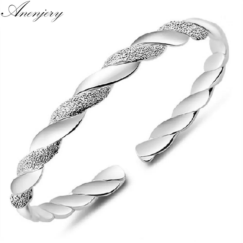 Promo Anenjery 925 Sterling Silver Love Twist Scrub Cuff Bracelets & Bangles For Women pulseras Valentine