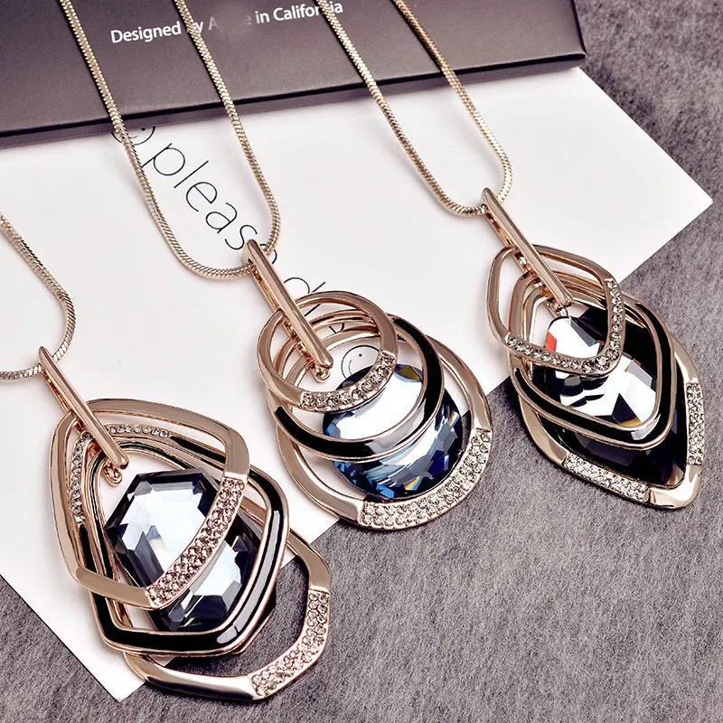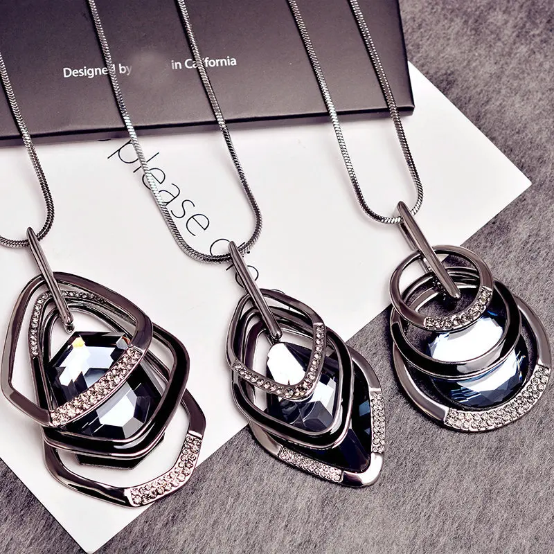 Promo BYSPT Silver Gold Color Rhinestone Long Necklace Vintage Punk Triangle Square Oval Crystal Glass Pe