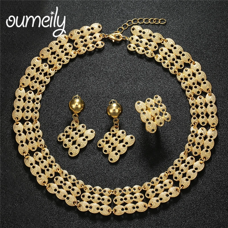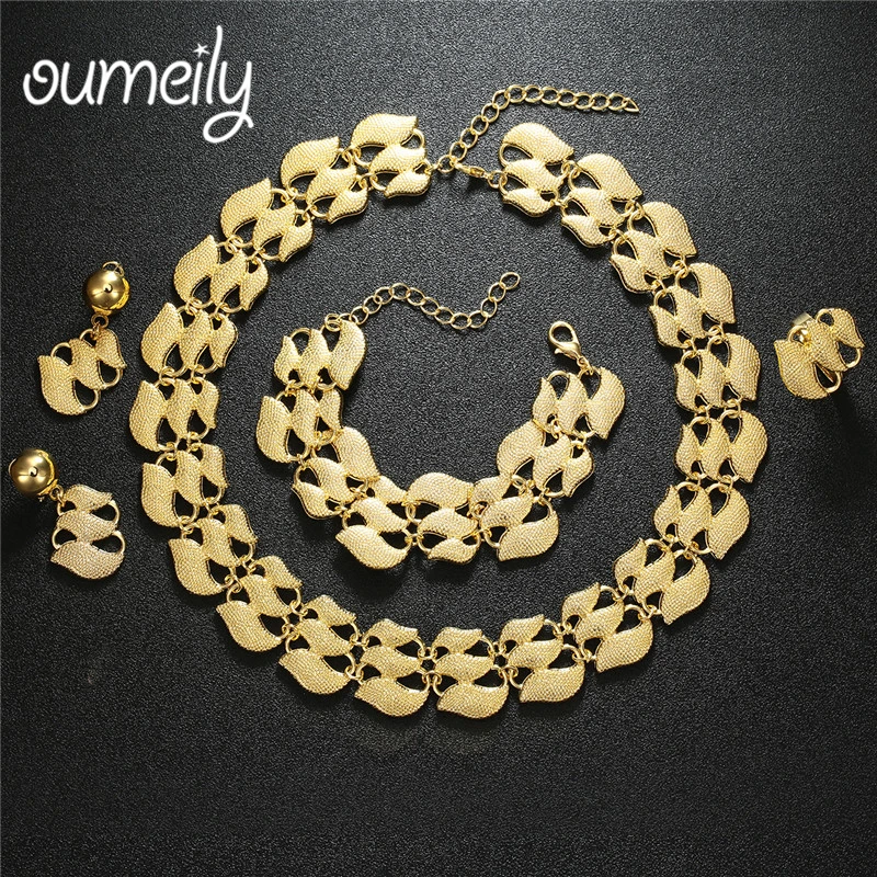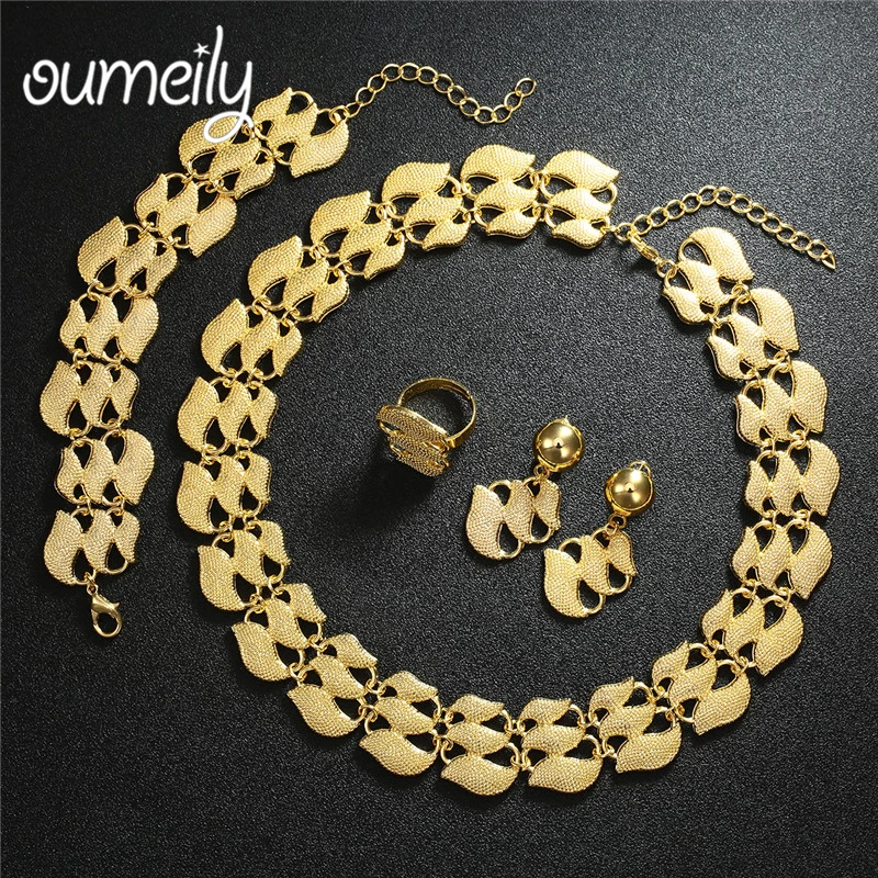 Promo OUMEILY Fashion Dubai African Jewelry Set Nigerian Wedding Jewelry Set For Women Brides Gold Color