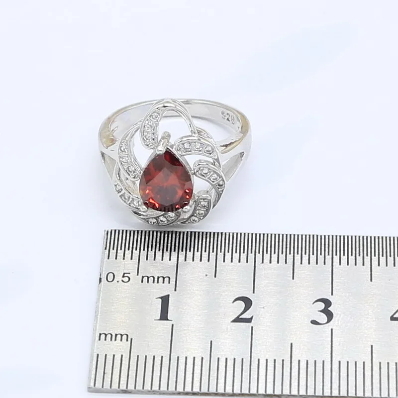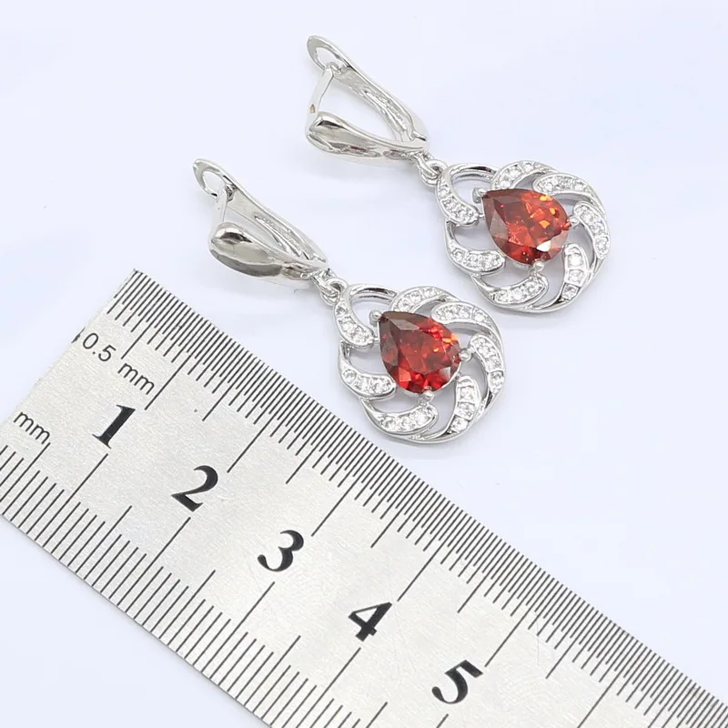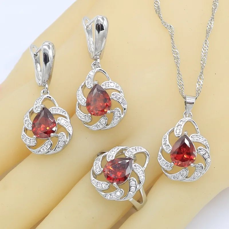 Buy Red White Zircon 925 Silver Jewelry Sets for Women Bracelet Earrings Necklace Pendant Ring Birthday