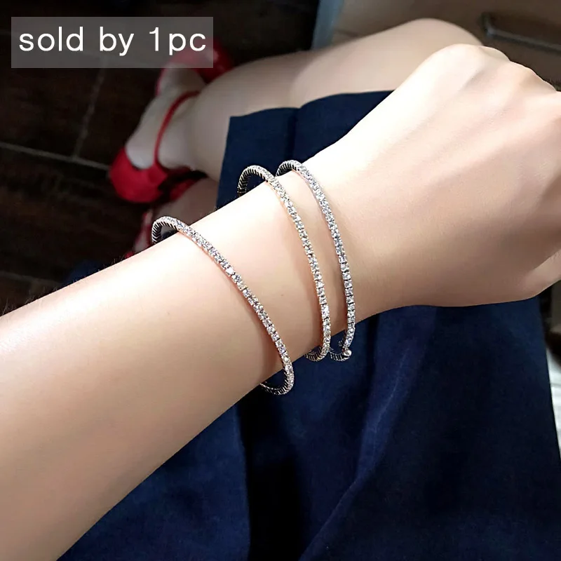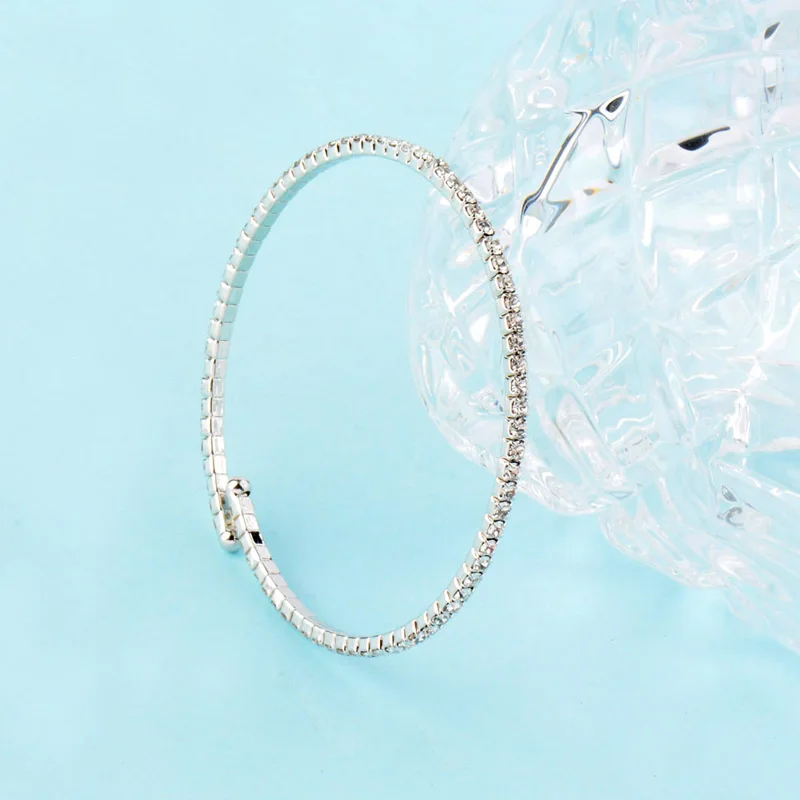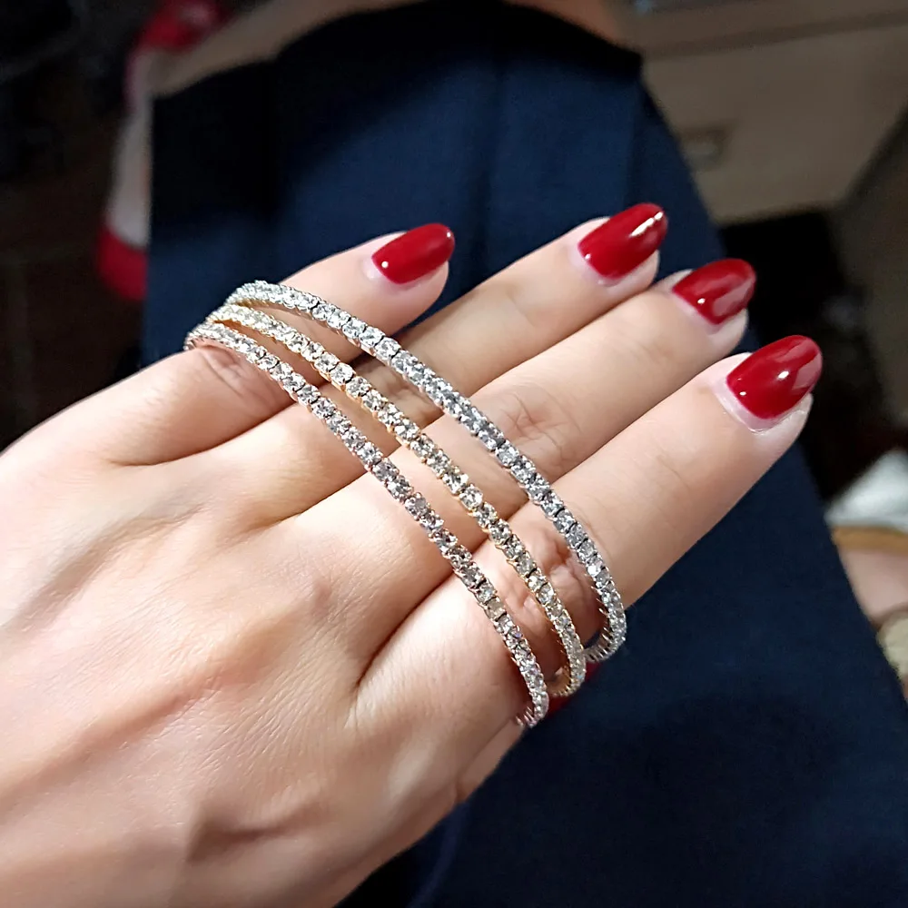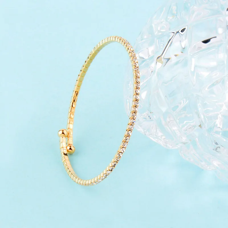 Buy SINLEERY Trendy 3 Colors Full Rhinestone Thin Open Adjustable Bangle Bracelets For Women Lover Gift