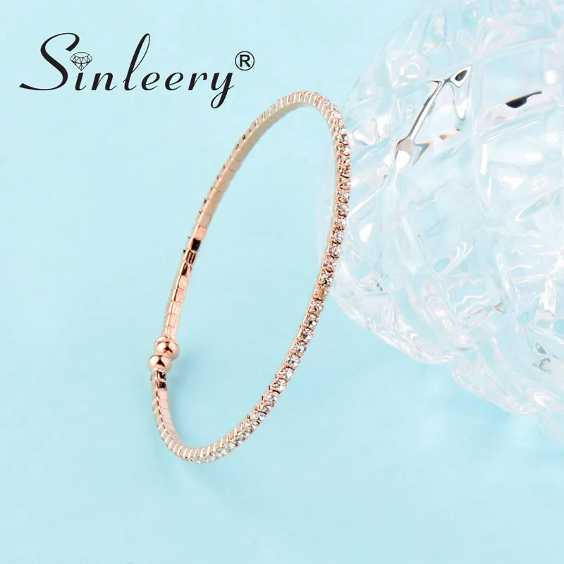 Promo SINLEERY Trendy 3 Colors Full Rhinestone Thin Open Adjustable Bangle Bracelets For Women Lover Gift
